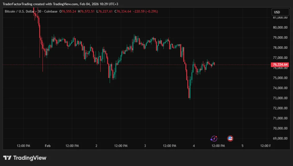 Bitcoin dropped below the $73,000 level late yesterday, its lowest point since the start of the month. The cryptocurrency lost over 9% in value in just five days, underscoring how quickly the market can pivot. After intense selling, the price rebounded fast. The jump back above $76,000 reflects typical crypto behavior, where steep drops often see buyers step in and push values up again. Volatility remains a hallmark of digital assets, with price swings that can unfold within hours.